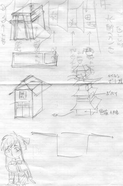 ちと裏側が透けてますが気にせずに。 鳥居型、神社看板付き型、ときて何故か 三重の塔型に発展してます。一応拡張性 なんぞも考慮されてる模様。 下の人物画は無関係です。はい(笑) |