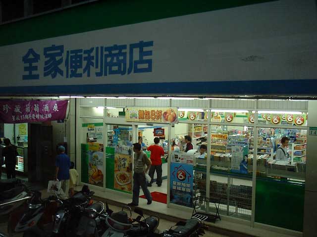 ファミリーマートです。 かなりの件数がありました。 あとセブンイレブンも。 店内に入ると、いきなり煮過ぎた おでんの匂いにうんざりします。 そう、私の記憶では日本でいえば ちと古めのローソンなんぞが同じ 臭いを放ってました。 ここでも基本的に飲み物は安いっす。 お菓子とかは結構見慣れた商品の 台湾版とかがありました。 えびせんとか。 飲み物もカルピスとかはそのまんまの やつとか台湾版とか店によって バラバラでした。 あいかわらずコーヒーだけ高いっす。 (日本とそんなに変わらない) |